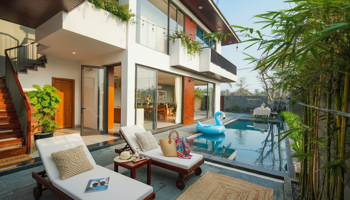 🎁 A newly built villa just 3 minutes’ walk to both Cua Dai Beach and Thu Bon River, offering a rare blend of privacy, wellness, and coastal charm. Enjoy a private pool, beach yoga, and walkable access to local restaurants and spas. With 3 serene bedrooms (2 king beds + 2 singles), it comfortably hosts 6 adults + 2 kids (under 6) — perfect for families seeking space, relaxation, and meaningful connection in a refined, tranquil setting.