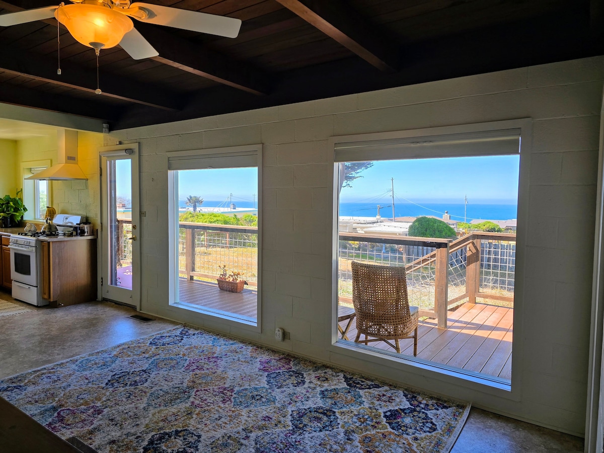 この素晴らしい家は海の真上の崖にあります。 リビングルームに座って海の180度の景色を眺め、波が打ち寄せるのを聞き、猛禽類がヒノキの木に止まるのを観察し、鹿、キツネ、その他の野生動物が丘で餌を探すのを観察します。 時折、沖合で泳ぐクジラやイルカを見ることができます。 夕暮れ時には、新しい家電を完備した設備の整ったキッチンで夕食を作りながら、夕日を眺めましょう。 その後、波の音にリラックスしながら、月と星が出てくるのをご覧ください。