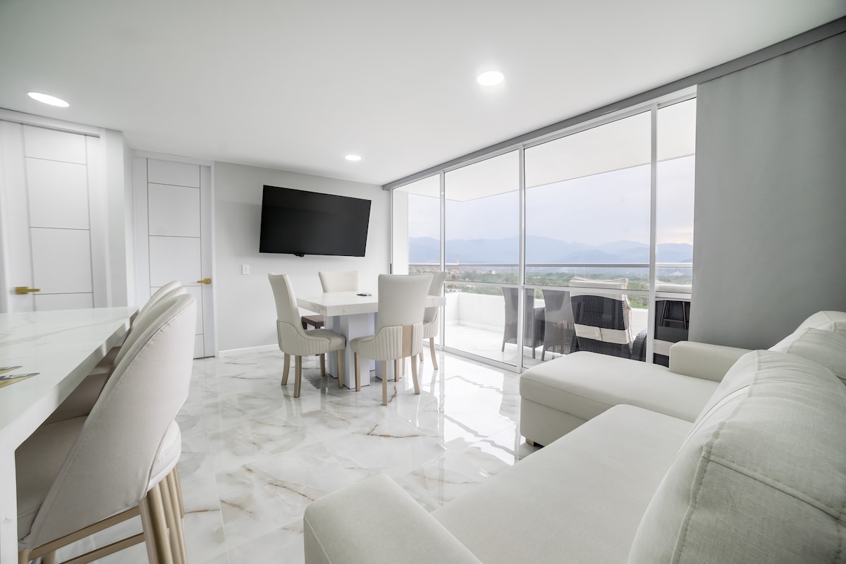 私たちの美しいアパートへようこそ!ダイニング、アメリカンバー、調理器具付きキッチン、洗濯機付きクリーニングスペース、ダブルベッドルーム1室、ダブルサイズの補助ベッド、2人用ソファベッド、バスルーム2室、リビングルームのテレビ、専用駐車場、24時間警備。 * 3名目以上の場合は45,000コロンビア・ペソ、ペット1匹につき50,000コロンビア・ペソの追加料金が発生します。