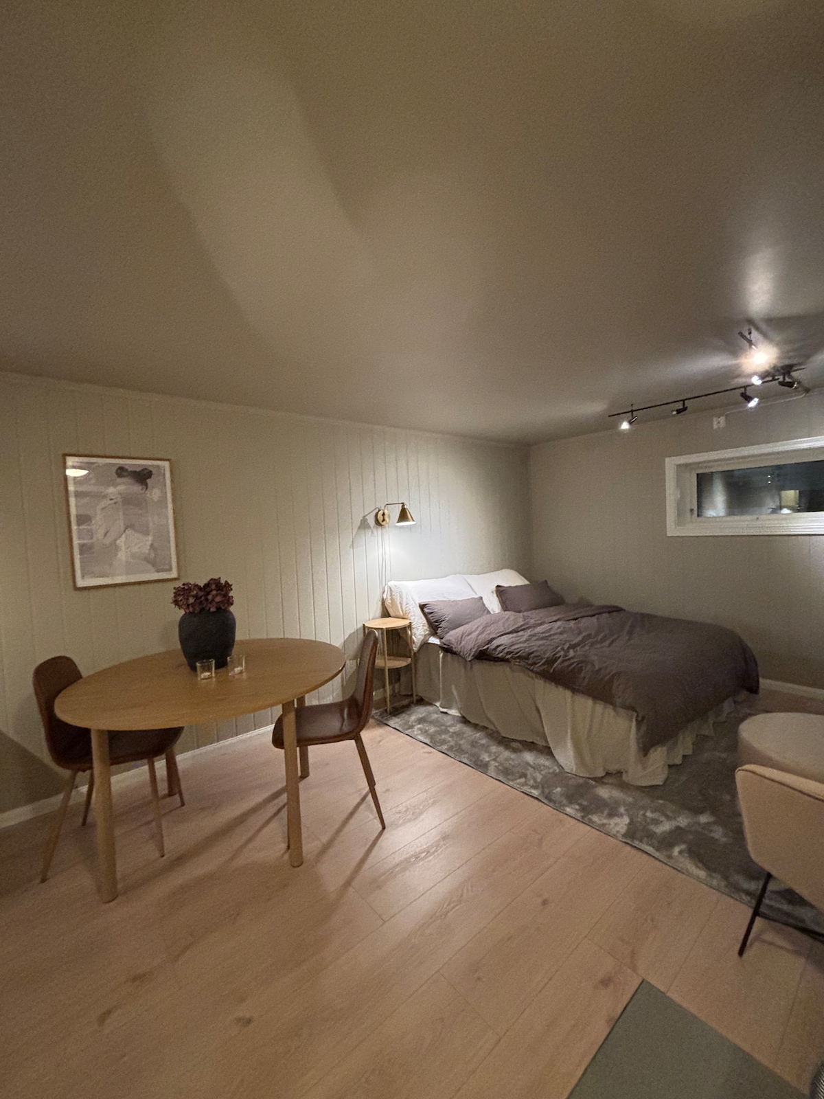 サンドネスジョエンにある寝室とバスルームのある小さなコンドミニアム
