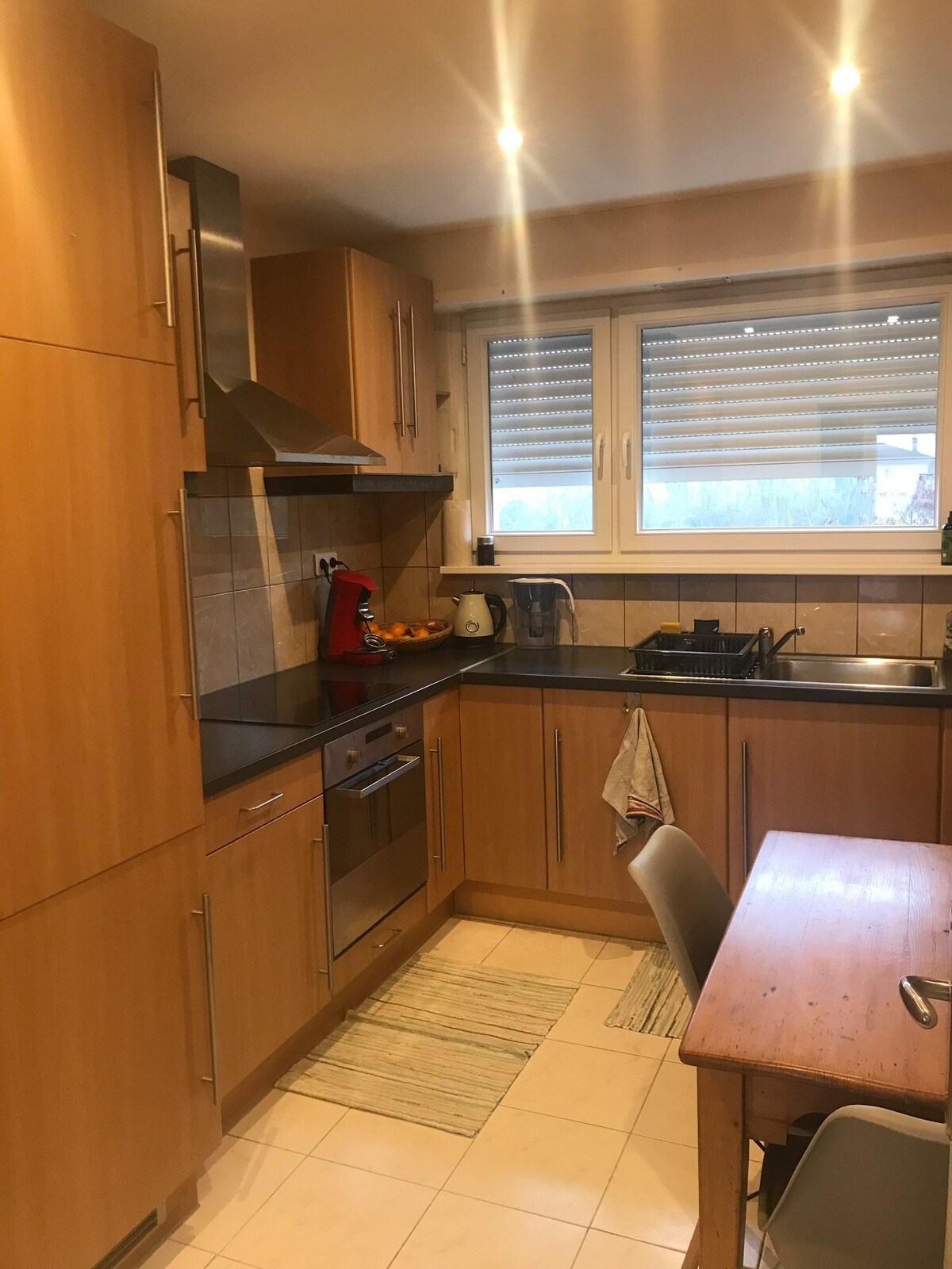 Un appartement familial ou entre amis, lumineux, moderne aux portes de Strasbourg. Profitez d'un séjour serein dans ce logement spacieux et calme à quinze minutes en vélo de la cathédrale de Strasbourg. Un quartier en périphérie, loin des bouchons et du bruit du centre-ville vous permettra un séjour reposant à proximité de tout avec un stationnement gratuit. Un appartement dans une maison alsacienne, très bien équipée avec également une grande télé connectée avec accès aux chênes.