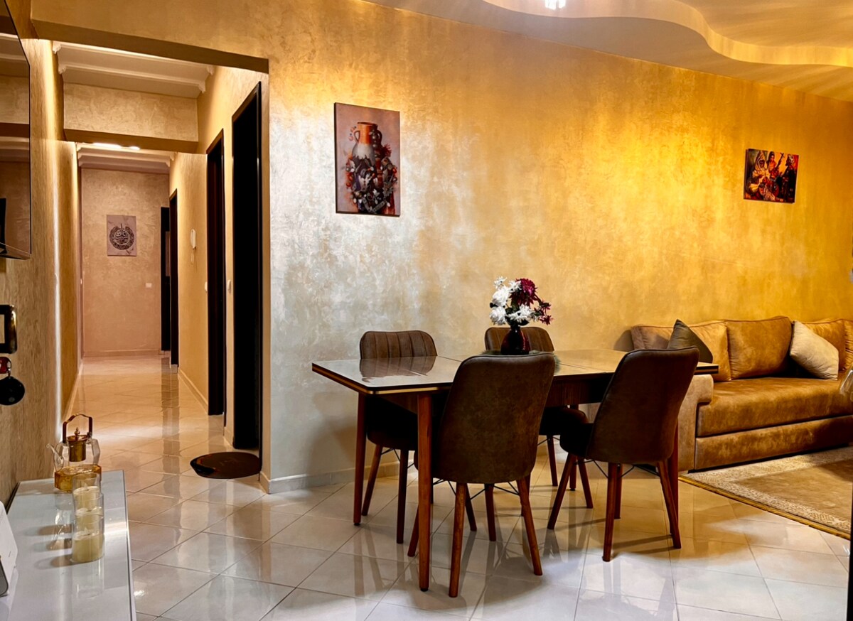 アガディールの中心部の賑やかな地区にある建物の1階に理想的に位置する明るく広々としたアパートへようこそ。最高のアトラクション、レストラン、カフェから数歩 スーパーマーケット - 公共交通機関 - スーパーマーケットと薬局が近く、ビーチまで12分 カップル、家族、出張者に最適です。歓迎の気持ちを伝えるための小さなサービスをご用意しています!新鮮なフルーツバスケットとボトル入りの水を無料で提供しています