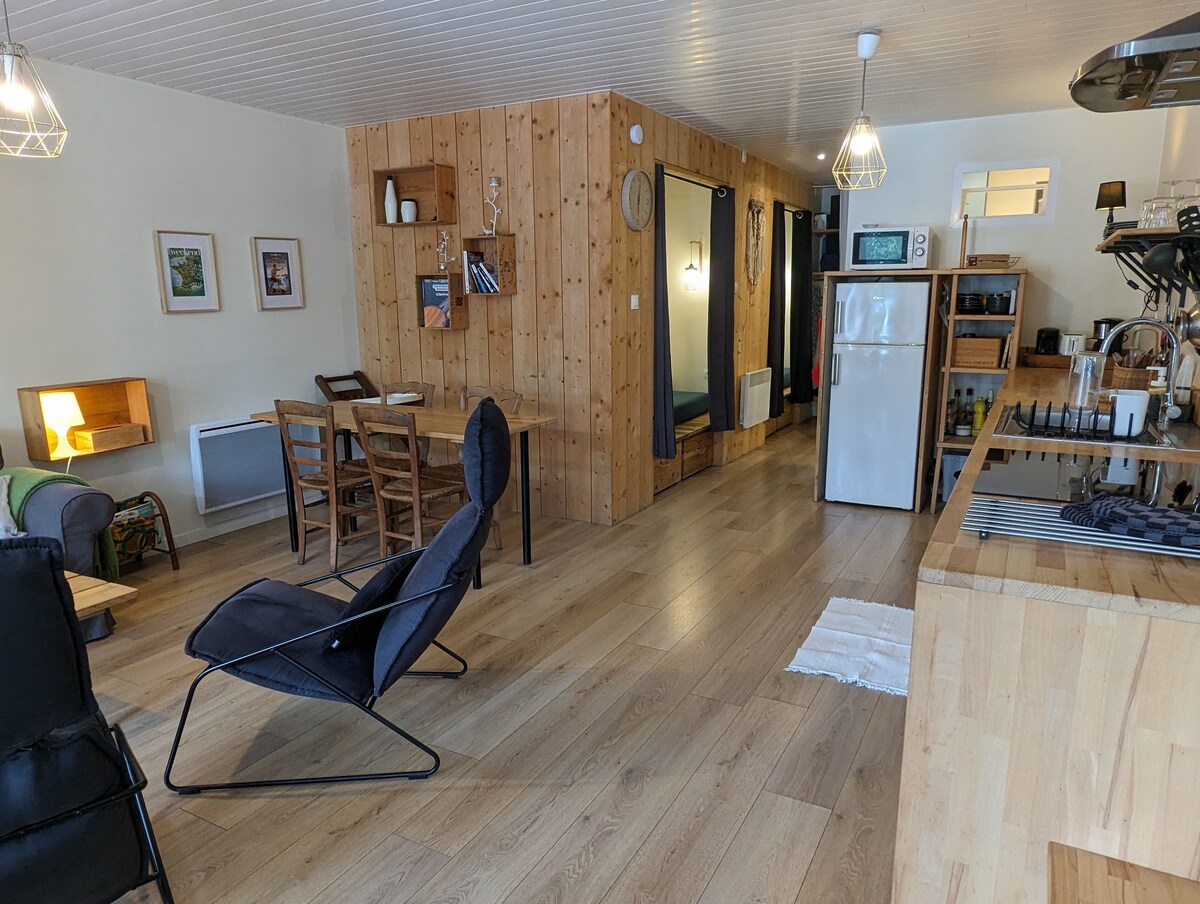 バスク地方の中心部にある、私たちの個別の家の庭にある、新しくて、3つ星の、かわいいT3。理想的な立地で、海や山から20分、スペインから10分です。アパートは、エスペレットやサン・ペ・シュル・ニヴェル湖から5分、カンボ・レ・バンから10分のところにある、スライドの高台に位置しています。パン屋、食料品店、18ホールのゴルフ場、季節限定のプール、レストラン2軒、子供の遊び場があります。