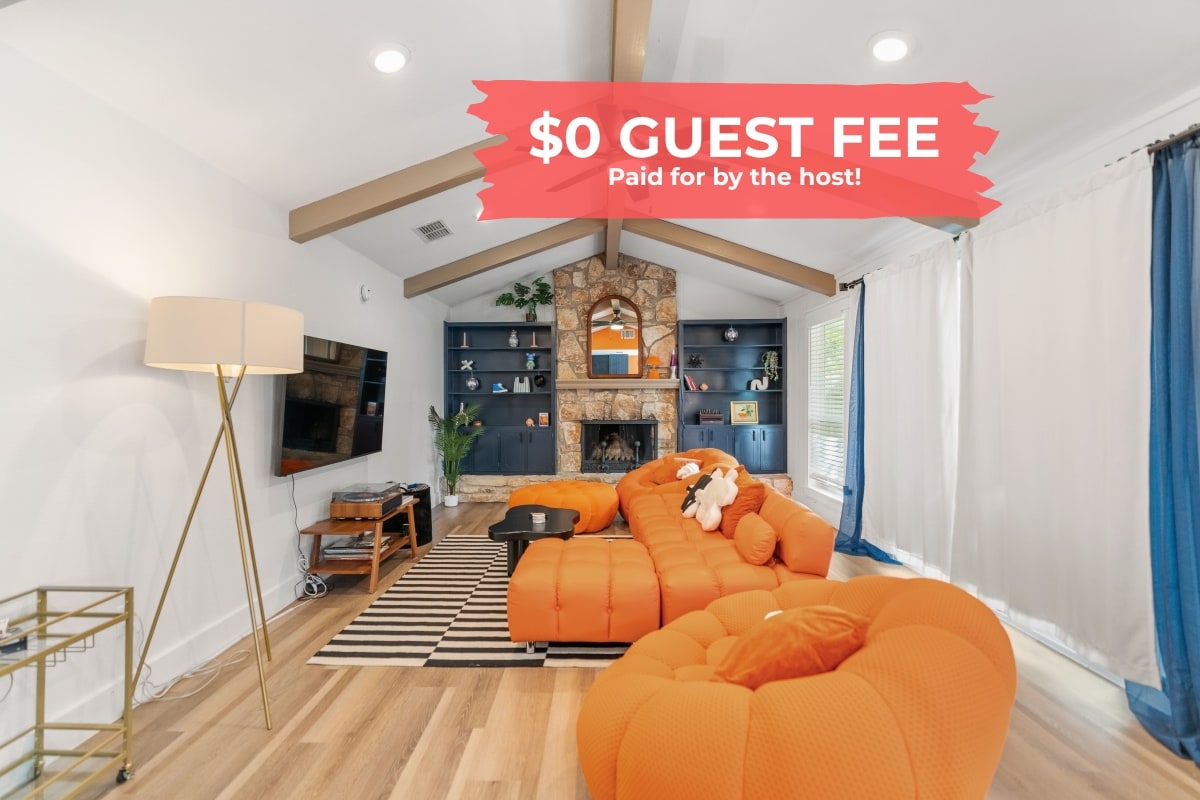 この美しく広々としたファミリーホームで明るい朝をお楽しみください。DT、SOCO、Zilker Park、Auditorium Shores & Lake Austinまで9分です。 インスタ映えのインテリア!ステーキをグリルしたり、焚き火の前に座ってコーンホールをしたり、子供たちがツリーハウスで遊んでいる間に。 居心地の良いファミリールームで映画を楽しんだり、ガラス張りの暖炉の前で素敵な夜を過ごしたりできます。 一人の時間が必要な場合は、バンガローのオフィス/図書館にお越しください。 ベッドは7人用ですが、ご家族がそれ以上の場合はお問い合わせください。
