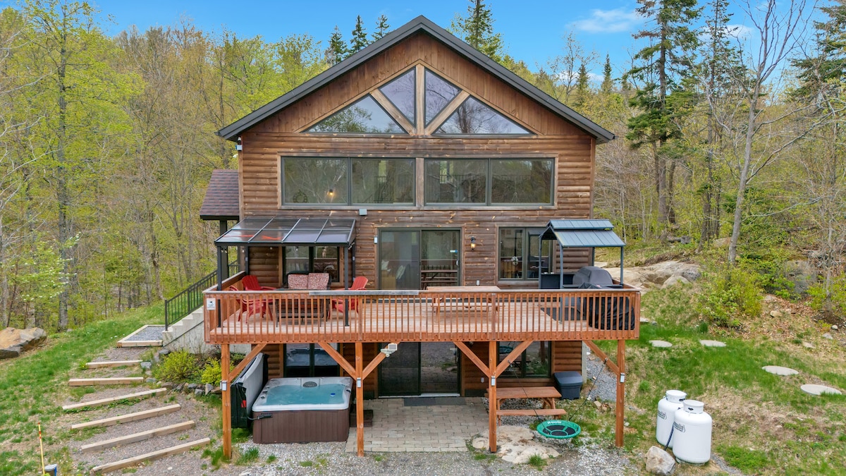 山の景色が楽しめる、自然に囲まれたシャレー。屋外の屋根付きスパは通年営業、屋内外に薪ストーブ、床暖房、バーベキュー設備完備。コーヒー付きのフルキッチン。3つの寝室:キングサイズベッドとガス暖炉を備えたマスタースイート、クイーンサイズベッドを備えた2つ目の寝室、クイーンサイズベッドを備えたメザニン。敷地面積は5エーカーで、2026年に2期目の賃貸が予定されています。リラックスするのに最適です。登録番号309551、有効期限2026年6月8日。