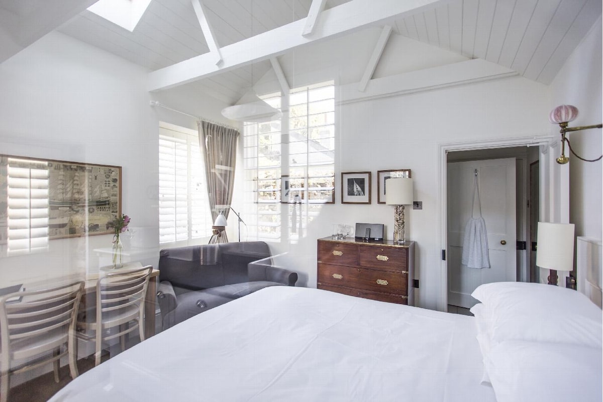 Enjoy a beautifully renovated loft conversion with private access in the heart of historic Totnes just 7 minutes walk from the railway station Visit this culturally vibrant town full of independent cafes, restaurants, shops, pubs, a climate hub, independent cinema and two traditional weekly markets: www.airbnb.com/slink/u7YFDN4Y Enjoy stunning walks along the river Dart from our front door or visit remote & beautiful beaches or Dartmoor nearby Ideal for couples, young families or friends