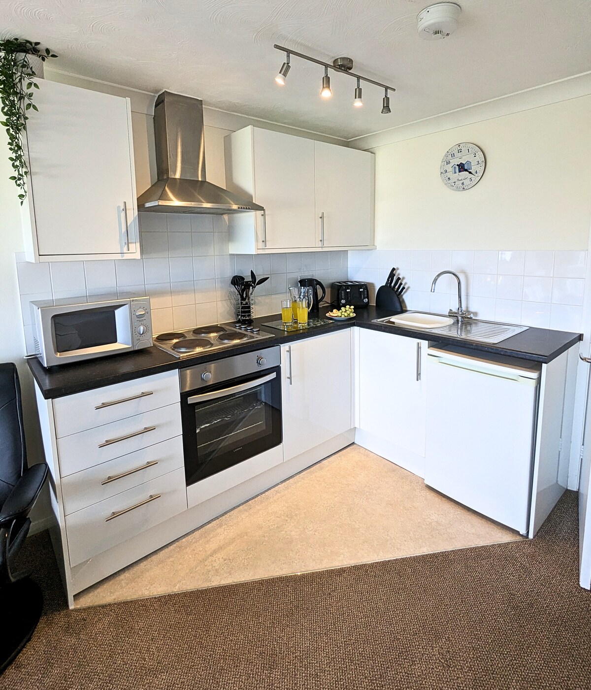 · Brand-new One-bedroom apartment in central Exeter, close to The Quay. · Address: Friernhay Court, Exeter. · Sleeps 4 with king or twin bed & sofa bed. · Just a 1-minute walk from Exeter High St in a quiet spot. · Shops, cafés, restaurants, & river walks on your doorstep. · Ideal for short or longer stays, work, or leisure. · Ground-floor apartment with large shower. · Paid parking offered. · Central & convenient city base.