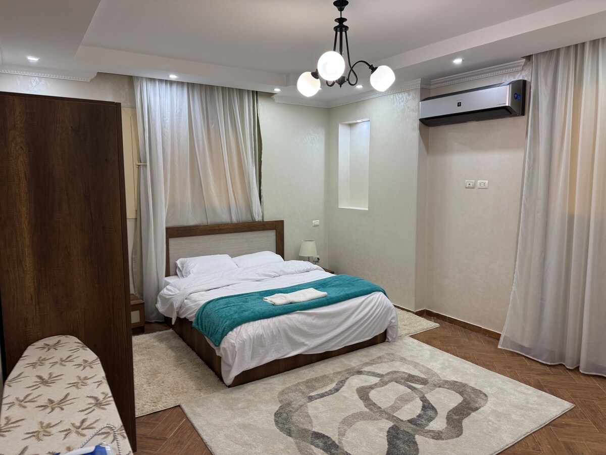 Welcome to your home away from home! This modern, serene house is designed for comfort and relaxation. Step outside and enjoy the refreshing pool. You’ll find a fully equipped kitchen with everything you need to cook your favourite meals. The home is centrally located in New Cairo, with supermarkets, cinemas, and plenty of entertainment options nearby. Whether you’re here for business, leisure, or a mix of both, this cozy modern space is the perfect base for your stay. You’ll absolutely ❤️ it.