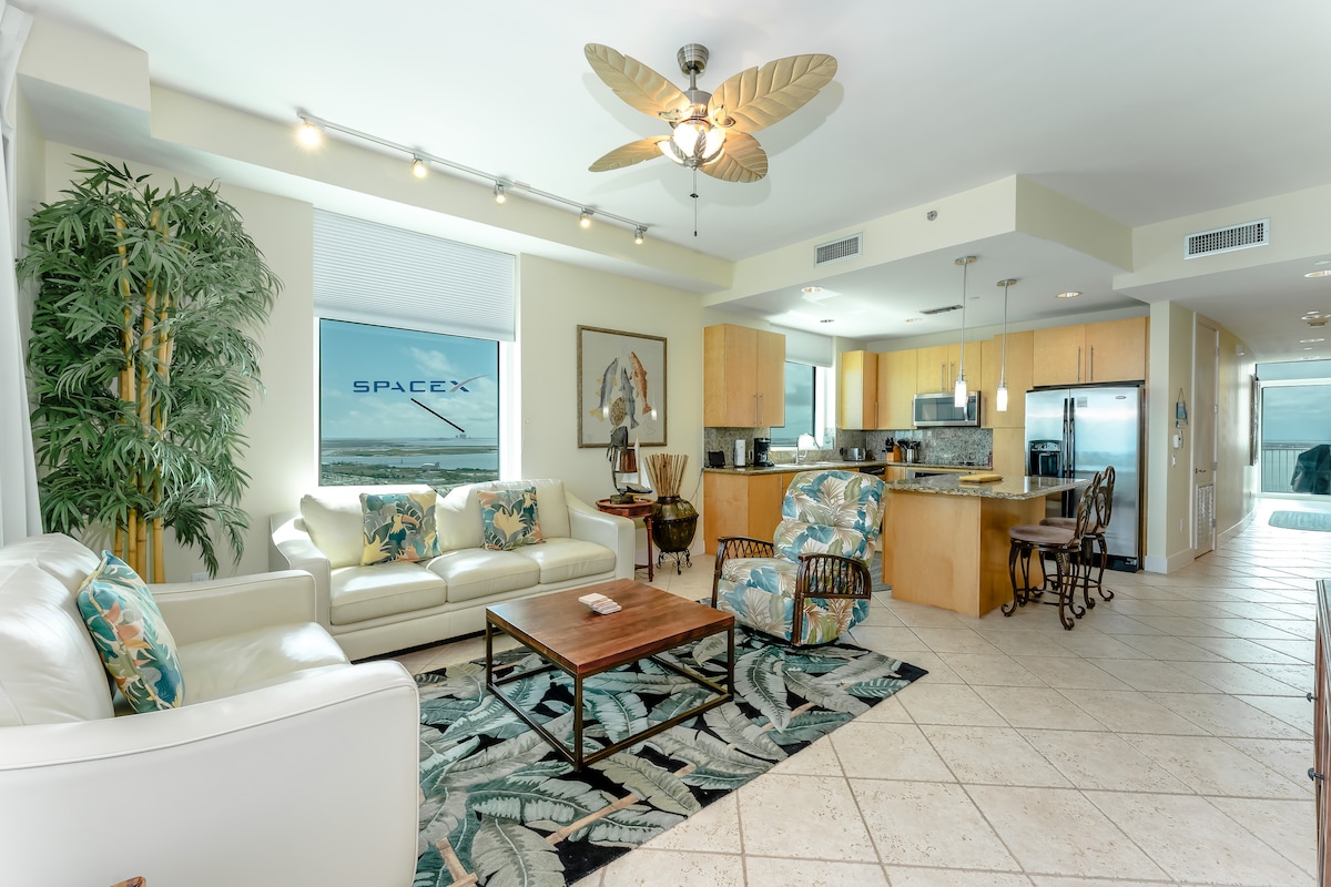 Kick back and relax in this stylish beachfront condo located at the Sapphire with breathtaking views of SpaceX, the gulf sunrise and bayside sunset. Relax by our luxurious pool, enjoy the spa, work out in our gym or put your toes in the sand on our pristine beach. Permit #2025-0121