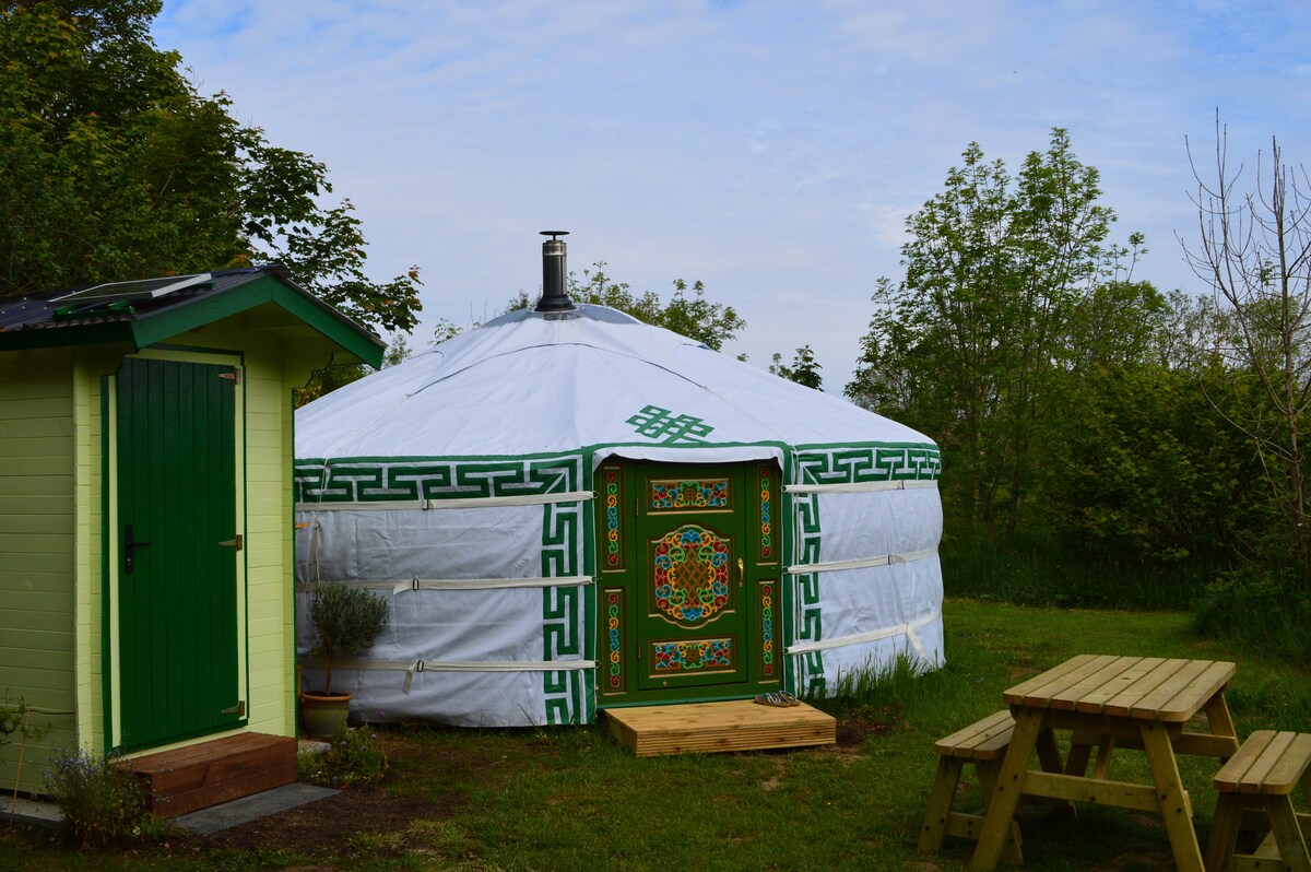 グランピングの空間を満喫してください。6エーカーの敷地に、ヨーロッパの高級ユルト3軒と伝統的なモンゴルのユルトがあります。 ここは忙しい生活から離れてリラックスできる特別な場所です。 ユルトの隣には専用のキッチン、シャワー、トイレがあります。 キングサイズベッド、二段ベッド、ダイニングエリア、テレビ、Wi-Fi、薪ストーブ ユニークなヒッピー風呂、屋外座席、ダイニングスペース、ファイヤーピットがあり、ワインを片手に炎を眺めたり、この暗い空の地域で明るい星を眺めたりできます。