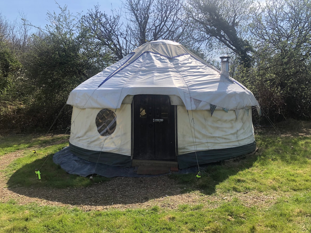 ウェールズのワイルドウエストにある若いパーマカルチャー/フォレストガーデンサイトのユルトネイチャーリトリート。 シンプルで居心地よく快適です。2 ~5寝台、18フィートのユルト。美しい荒々しいビーチまで徒歩ですぐです。 ベルテントと追加のキャンプスペースは、大人数のグループが利用できます。詳細はメッセージでお問い合わせください。 シンプルな屋外/屋内キッチンには、必須の調理器具がすべて揃っています。2リングガスホブ、グリル、オーブン。ソーラー充電ポイントと充電式ライト。薪ストーブ、コンポストトイレ、ガスシャワー。グランピングではなく、素朴で土地に戻るユニークな体験です。
