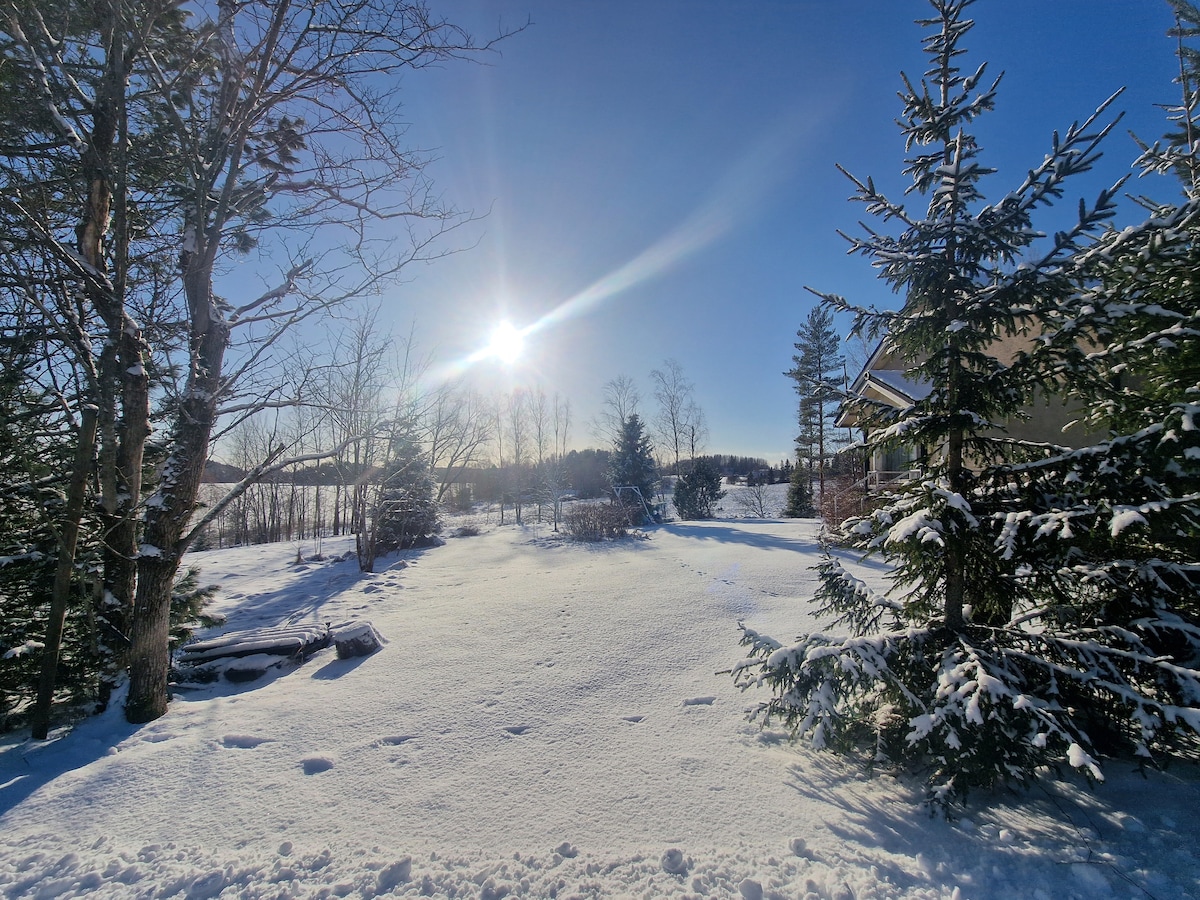 湖のほとりでリラックスし、泳ぎ、サウナを楽しみましょう! 広々としたパティオで、朝のコーヒーを楽しんだり、日光浴をしたり、夕日を眺めたり、ヨガをしたりするのも素晴らしいです。2枚のSUPボード、2人乗りカヤック、手漕ぎボートをご利用いただけます。サイクリングが好きな方には、伝統的な女性用自転車をご用意しています。 伝統的なサウナで熱い汗をかき、階段から直接清浄な湖に飛び込むことができます。スペースの都合上、コテージはカップルと子供1名に最適です。