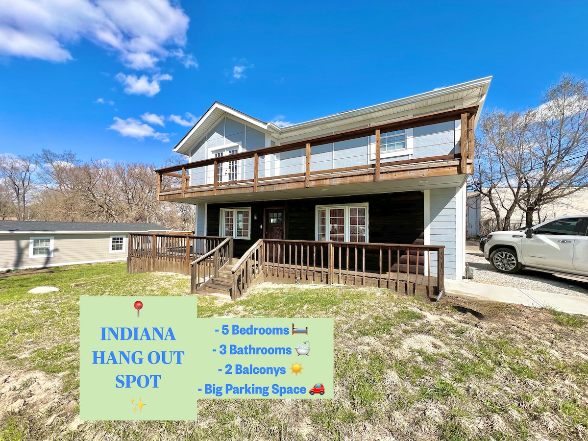 Welcome to Indy Traveler! Our key hangout home boasts a two-level layout, five cozy bedrooms, an updated kitchen, six parking spaces for your group's convenience, a secure self-check-in keypad, and two charming balconies perfect for relaxing or entertaining. Locations nearby to visit: Motor Speedway 4.3 mi Downtown Indy 6.9 mi Convention Center 6.2 mi Lucas Oil Stadium 6.2 mi Gainbridge Fieldhouse 8.1 mi