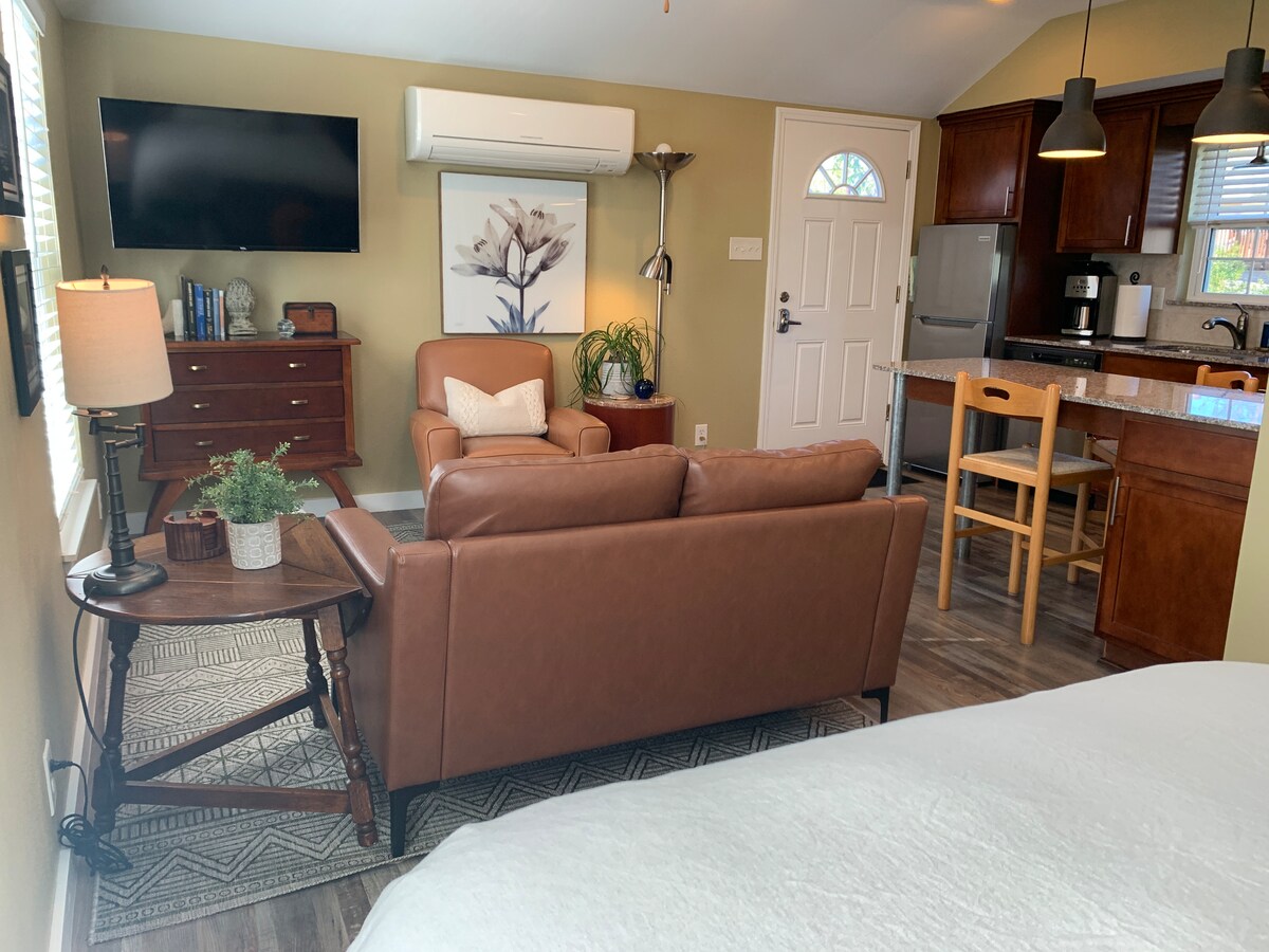 このコテージは1937年に建てられ、ガレージに隣接している元の家の裏にあります。 お部屋の改装は2014年7月に完了したばかりです。このスペースはとても居心地が良く、フルキッチン、バスルーム、リビングエリアがあり、ツインベッド2台で追加の寝室を提供できます。 新しい改装には、クイーンサイズベッドを備えた寝室ロフトも含まれています。美しいヴィンテージのワードローブにはたっぷりの収納があります。 このスペースには無線インターネットアクセスがあります。2ブロック先の喫茶店/ダイナーには無料Wi - Fiもあります。 洗濯が必要な場合は、お近くのランドリーサービスまたはランドリーマットをご利用いただくことをおすすめします。週に1回、シーツとタオルの洗濯を行います。 目の前の通りに駐車場があります。 外には、メイン構造とは別のアクセスを持つ独自のプライベートシートエリアがあります。 当社の物件は、ロウワー・グリーンビルの「M」ストリートの中心部に位置しています。このエリアは1920年代に設立され、レストラン、バー、ショップ、そしてライブミュージックでいっぱいです。 この宿泊施設は非常に中心部に位置し、ダウンタウン、アート地区、ホワイトロック湖、ザ・アーボレタムなどへ簡単にアクセスできます! 公共交通機関をご利用の場合は、ブロックの端でバスに乗ることができ、鉄道駅までわずか5分です。 ガイドブックをチェックして、すぐの通りにたくさんのスポットがある、徒歩圏内の素晴らしいスポットを見つけましょう!