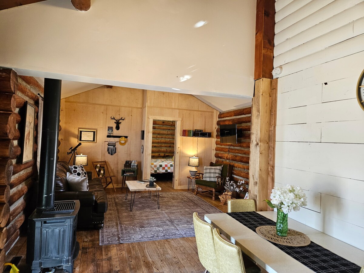 Enjoy a beautiful start to your day as the sun rises over Battle Mountain, the backdrop to our campground. The Ridge View Cabin is a two room log cabin which sleeps up to 6 people. The cabin has a queen size bed, full size bed, sofa sleeper and futon. Enjoy the convenience of a small kitchen, private bathroom and a beautiful deck to grill your favorite meal while you watch the wildlife wander on the 70 acre property. This cabin is dog friendly and offers a spacious dog park on property.