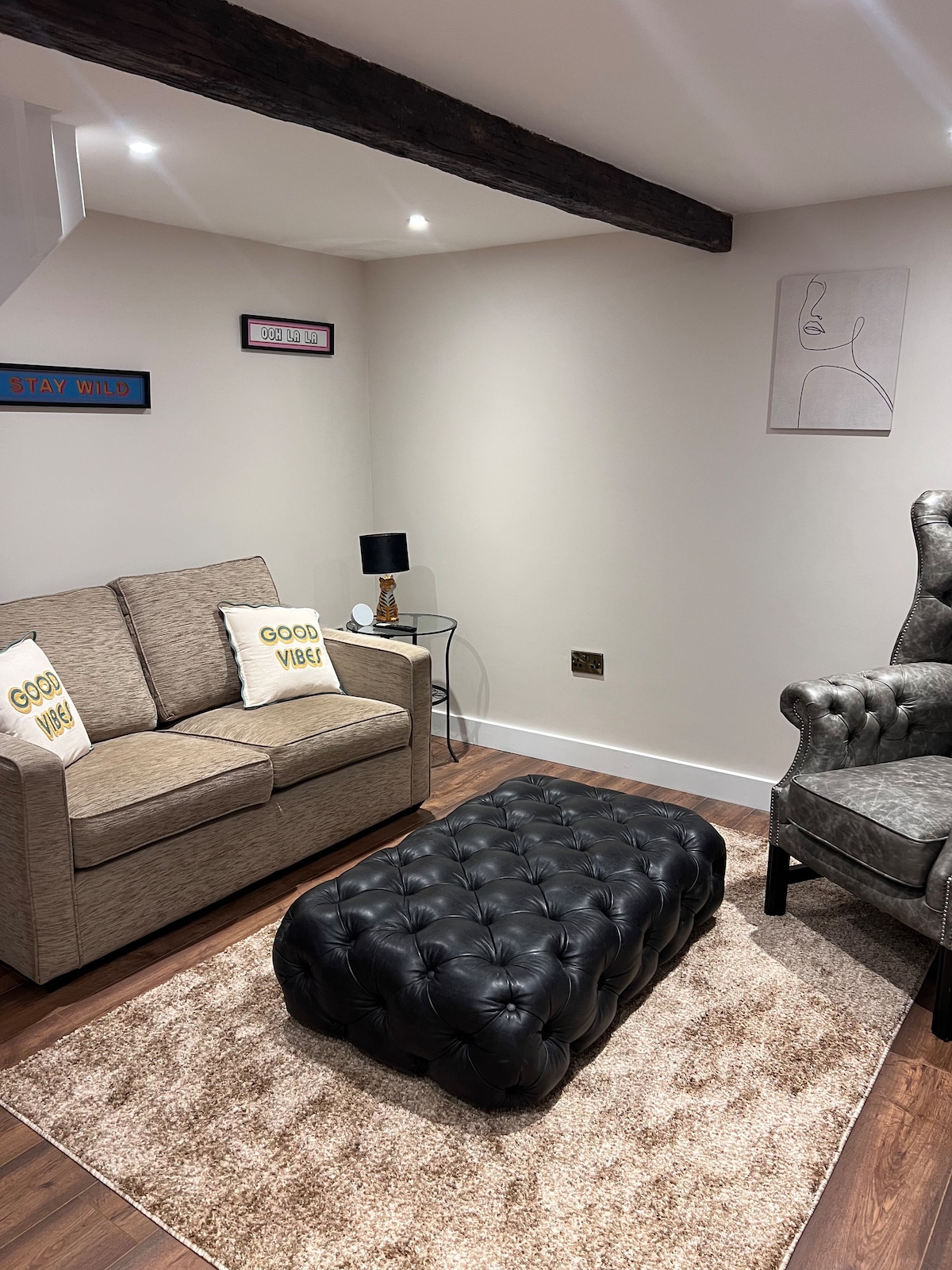 私たちは20年以上前にOld Piggeryを改装し、最近完全に改装しました。今ではソファーのある居心地の良い快適な空間と、広い景色を望むラウンジがあります。バスルームと階下、シャワーとトイレがあります。 寝室は中二階にあり、キングサイズの分厚いファームハウスベッドと非常に快適なマットレスが備わっています。 ラウンジエリアには、ローラ・アシュレーのソファと、広い景色を楽しめるスナッグルチェア、またはご希望であれば43インチのテレビがあります!