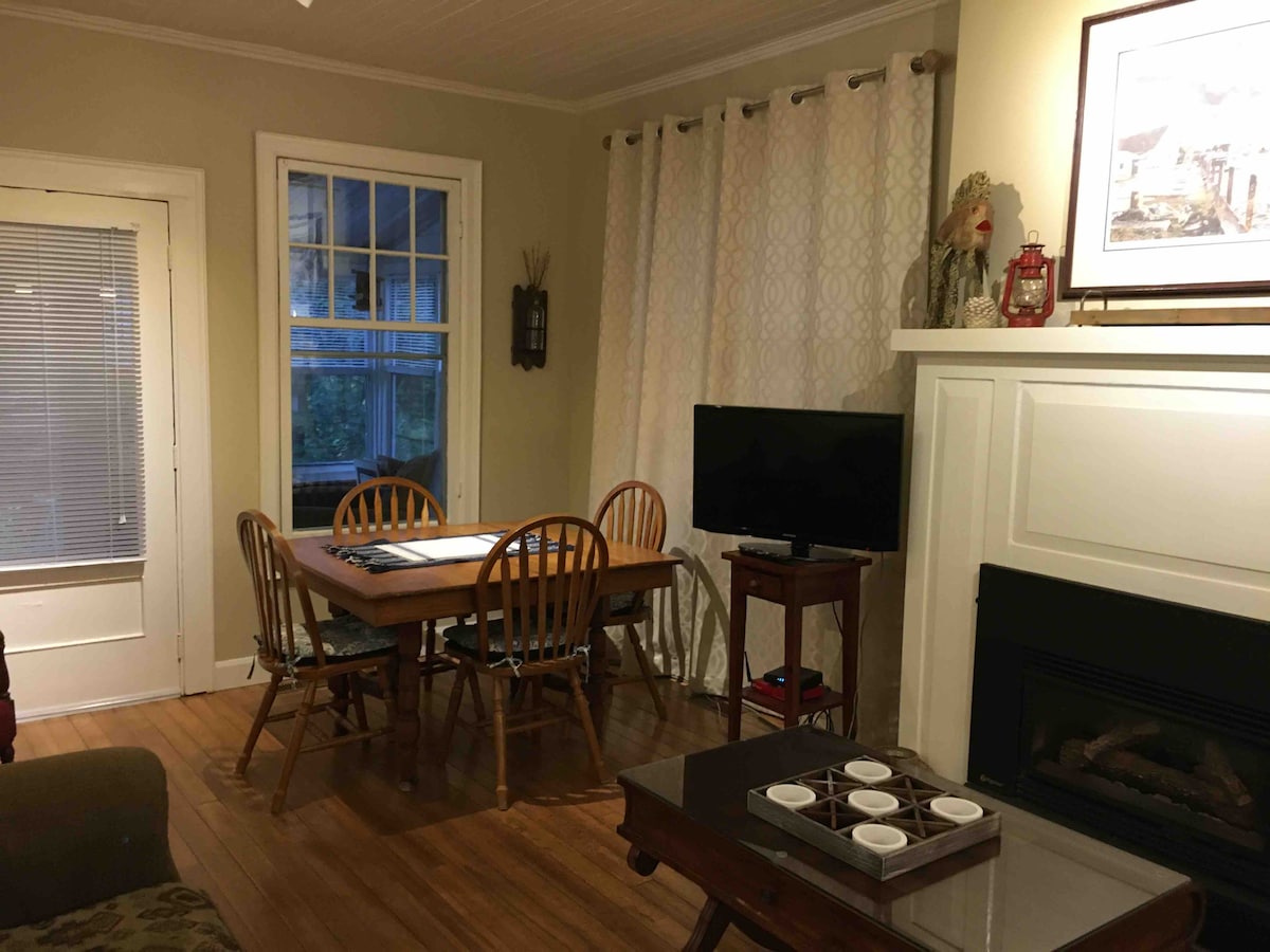 こちらのユニークで静かな4シーズン、2ベッドルームの宿泊先で、ごゆっくりおくつろぎください。 大きな湖とすべてのアメニティに近いです。ビーチまで歩いて行けるほど近く、飲食店へのアクセスも簡単です。すぐ近くに野球場と遊び場があります。大きなプライベートの木の裏庭、遊ぶスペース、ハンモックを掛けるエリア、2つのデッキ、バーベキュー、ダイニングエリア。 公園のような環境の中で、自分のキャンプファイヤーでマシュマロを焼きましょう。静かで平穏なプライベートなアウトドアの休暇。カップルや小さな家族に最適です。