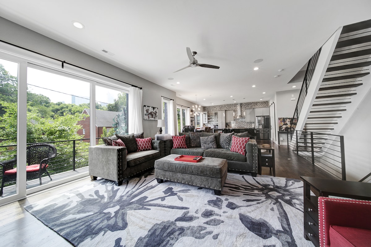 Sonosサラウンドサウンドスピーカーシステムを全館に備えた豪華なタウンホーム。専用の屋上デッキからシャーロットのスカイラインとスタジアムの景色をお楽しみください。モダンなインテリアで、シャーロットでの楽しい1日の後にゆっくりくつろぐために必要なスペースと快適さを提供します。中心部に位置しています。オプティミストホール、ノダ、プラザミッドウッドまで8~10分。3ベッドルーム、4.5バスルーム、マスターベッドルームにペロトン。ガレージ - 電気自動車充電器とトルクユニバーサルジム。トラストフィールド、バンク・オブ・アメリカ・スタジアムなどまで徒歩で行けます!テスラのレンタルとプライベートシェフの雇用についてお問い合わせください!!