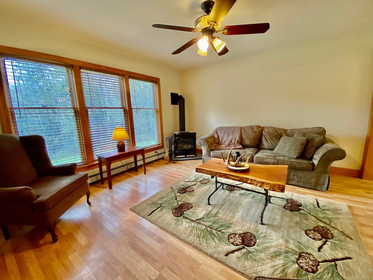 新しく改装された、プライベートで広々とした家で、ADKでのんびり過ごしてください。ここは4シーズンの隠れ家です。徒歩わずか10分で、プレイザント湖で泳いだり、カヤックやカヌーを楽しめます。ご注意:湖へのアクセスは近隣の人々と共有しています。ボートを借りて1日楽しみましょう。近くにはハイキングもたくさんあります。冬はスキー場を楽しんでください。オークマウンテンは5分、ゴアマウンテンはわずか30分です。スノーモービルにも素早くトレイルにアクセスできます。