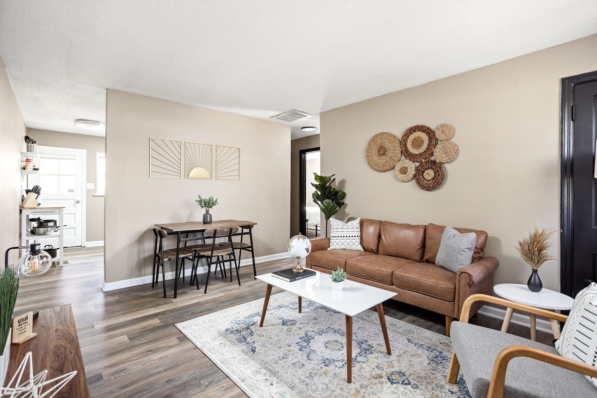 As a Guest Favorite and hosted by 4.8+ Superhost, this charming 2 bedroom townhouse in the heart of Speedway offerst the perfect blend of cozy comfort and unbeatable location. Relax on the spacious front porch and feel right at home in this classic blue beauty-ideal for race fans, families, and Indy explorers. Step inside a bright, inviting living area with comfy seating, streaming TV and fully equipped kitchen while the dining area is for gathering. Review our house rules prior to booking! 😊