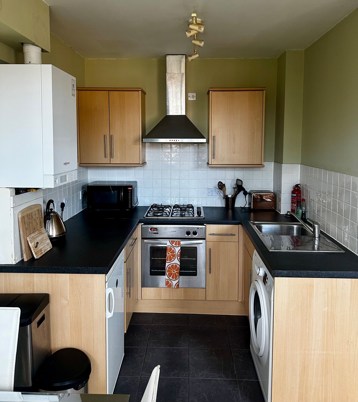 ゴージャスな自炊式ガーデンキャビン。専用のキッチンとバスルーム付き。クイーンベッドと小さなダブルサイズのソファベッドで最大4名様までご利用いただけます。大人4名様では狭いかもしれません。居心地が良いので、気にならなければ。メインハウスとは別の玄関があり、無料で路上駐車できます。町の中心部まで車で15分です。バス路線が良いです。静かで落ち着いています。キャビンからメインハウスが見えますが、目立つものではありません。