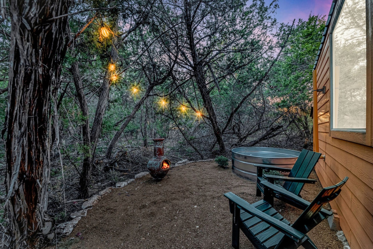 Chill on your deck at night soaking in the beauty of the sun setting over the lake, & marvel at the "firefly" solar lights in the tree illuminating your private nature sanctuary. Relax in your private hanging tree hammocks, or have some fun on the water and rent ON-SITE kayaks, paddle boards, or canoe. Rejuvenate with a private yoga, personal training, or massage session? We are a 4 minute walk to Stonehouse Vineyard winery, and just up the road from Krause Springs spring-fed swimming hole!