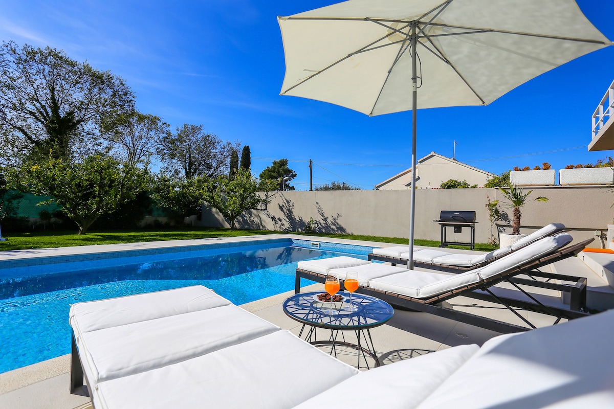 カステル・スタリの中心部にあるモダンなデザインのホリデーヴィラで、家族や友人と忘れられない夏休暇をお過ごしください。 温水プールをお楽しみいただくか、数分歩いて素晴らしい小石のビーチまでお越しください。 必要なものはすべてすぐそばにあります。お店、薬局、生鮮市場、パン屋、子供用遊び場、カフェ、レストラン。 コラスヴィラはスプリトリビエラを探索するのにぴったりな拠点です。