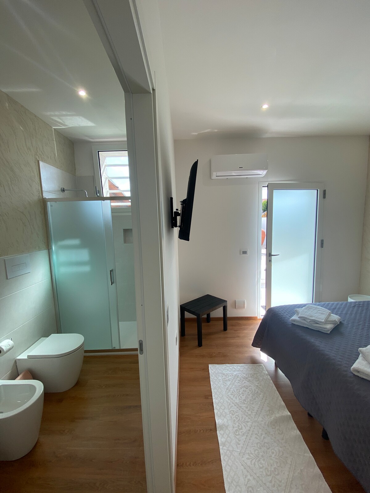 新築のアパートで、新品の家具が備わっており、カップルやご家族に最適です。快適に過ごせるよう、冷暖房、防犯ドア、建物外には常に利用可能な駐車スペースが備わっています。 一軒家の1階と最上階にあり、独立したアクセスと外部階段があります。 80平方メートルの宿泊施設は、広いリビングエリア(玄関ホール付き)、完全な独立キッチン、ダブルベッドルーム2室とシャワー付きバスルーム2室の寝室エリアで構成されています。