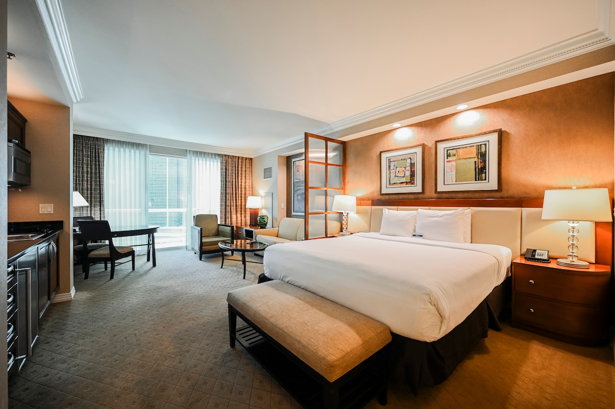 バルコニーからの眺めが楽しめるこの豪華なワンルームは、MGMシグネチャータワーのペントハウスフロアにあります。 キッチン、キングベッドとクイーンサイズのソファーベッドを備えたリビングスペース、ジャグジー付きの大きなバスルームが完備されています。 何よりも、MGMグランドとシグネチャーリゾートのアメニティ・設備とプールをご利用いただけます。 無料のけ駐車場/リゾート料金なし!!