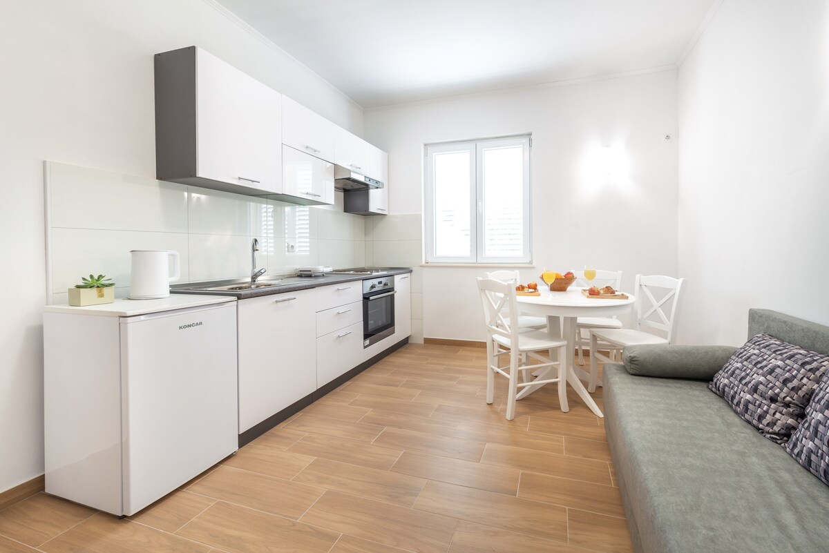 スタジオアパートメントLa Feは、観光地スレブレノの静かなエリアにあり、近くに無料駐車場がある住宅用の建物の3階にあります。アパートはスレブレノビーチから450m、クパリビーチから800m、ムリニビーチから1kmです。このワンルームアパートには、設備の整ったキッチンと、無料のアメニティとヘアドライヤーを備えたバスルームがあります。ワンルームには、180 x 200 cmの広々としたベッドが備わっています。この宿泊施設は、ショッピングセンターとバス停の近くにあります。