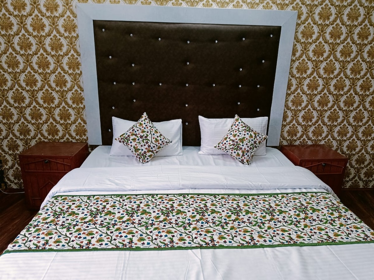 湖と山の一部が見えるデラックスルームで、ダル湖の美しさに近い場所に滞在しましょう。専用のバスルーム、快適な寝具、Wi-Fi、そして朝食やルームサービスなどのホテルサービスをお楽しみください。シカラ乗船、カフェ、人気の観光スポットまでわずか数分です。シュリーナガルを探索するカップル、ご家族、旅行者に最適です。Welcome Hotelでは、温かいおもてなしとゆったりとした滞在がお客様をお待ちしています。