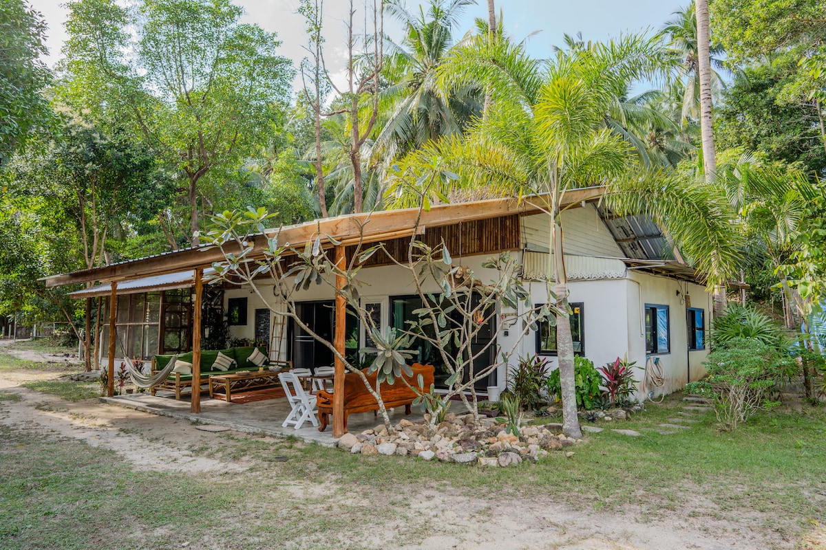 フェンスで囲まれた庭園のあるこの小さな平和な隠れ家をお楽しみください。 私の家には、クイーンサイズのダブルベッドを備えたエアコン付きの寝室があります。隣接する部屋はオフィスとして機能します。完璧なWi-Fi接続。温水の浴室と屋外キッチン。 環境はとても静かでタイらしく、ビーチやレストランからは5分です。 家の前にはスクーターのレンタルとランドリーがあります。