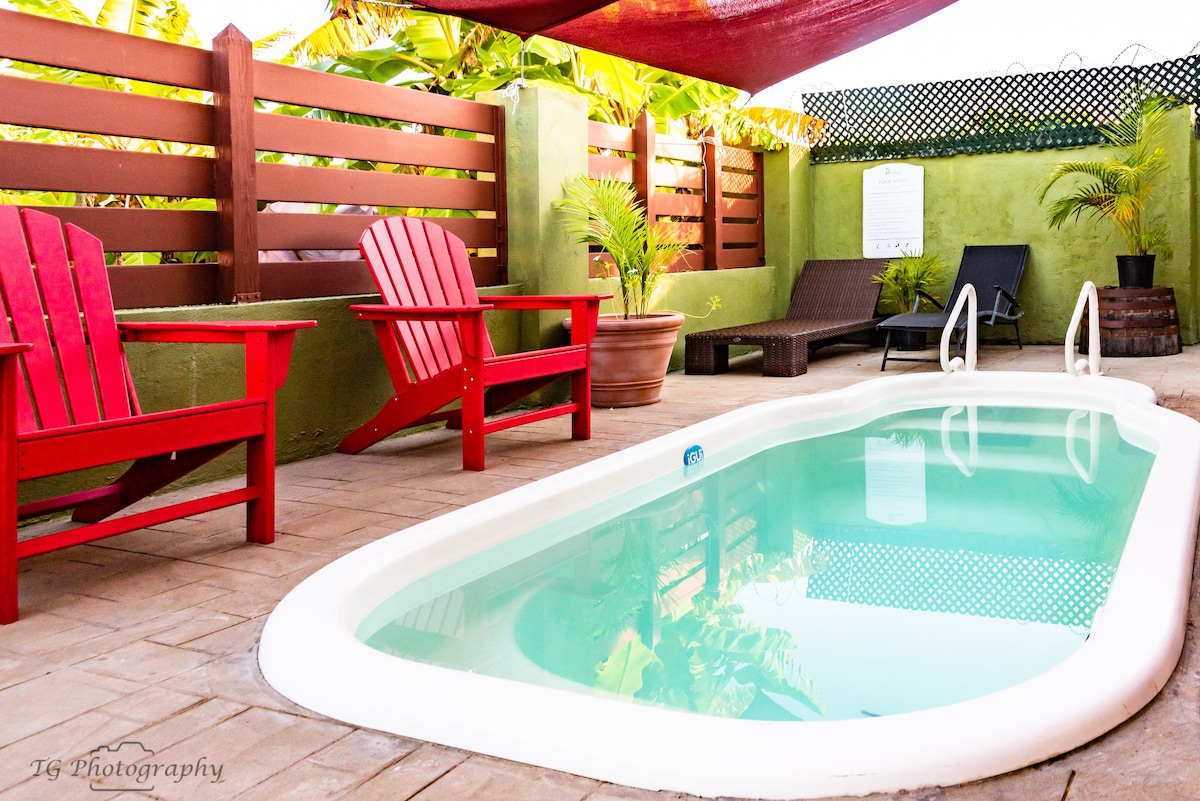 オチョリオスの中心部にあるモダンなトロピカルな隠れ家、ビーチフロントブリスへようこそ。この新しくリフレッシュされたスタイリッシュなデザインのアパートは、快適さ、利便性、カリブ海の優雅さが完璧に融合しています。清潔で広々とした中心部にある宿泊先をお探しのカップル、ひとり旅、出張のゲストに最適です。 プライベートビーチからわずか数歩、レストラン、ナイトライフ、マルガリータビル、アイランドビレッジ、すべての主要なアトラクションから数分です。宝石であり、楽園です。