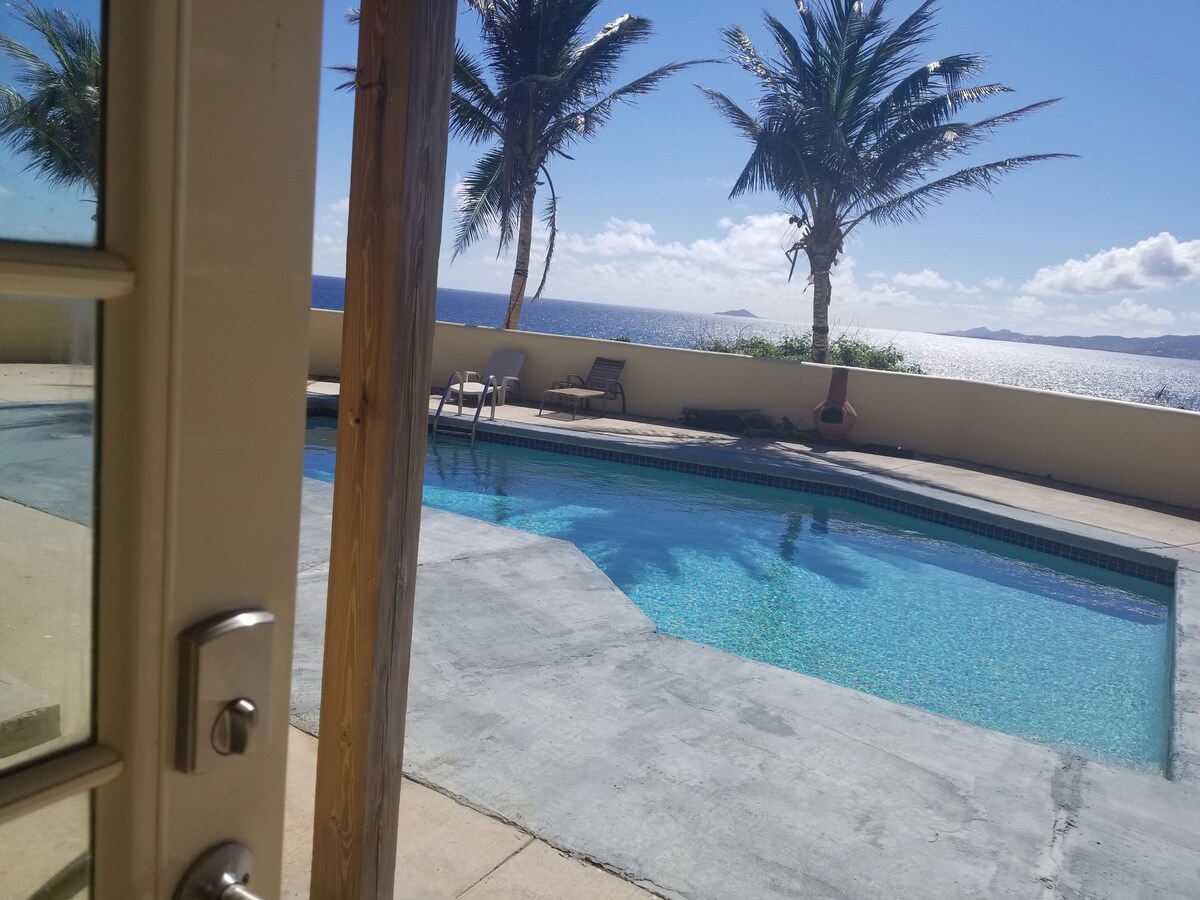 セントクロイ島で最も有名なエリア「ミスビーヘイヴン/グリーンケイ」にある「セレニティナウ」専用玄関スイート(1寝室/1バスルーム、2/2スイート)の「ピンクハウス」に滞在しましょう。 この物件は、プルポイントとバック島の最も壮大なオーシャンビューを誇っています。 写真ではお部屋が実物よりも美しいと言われています。 美しい物件です。 プールサイドでリラックスしたり、ビーチまで散歩したり、私たちと一緒に滞在したら、がっかりしないでしょう!