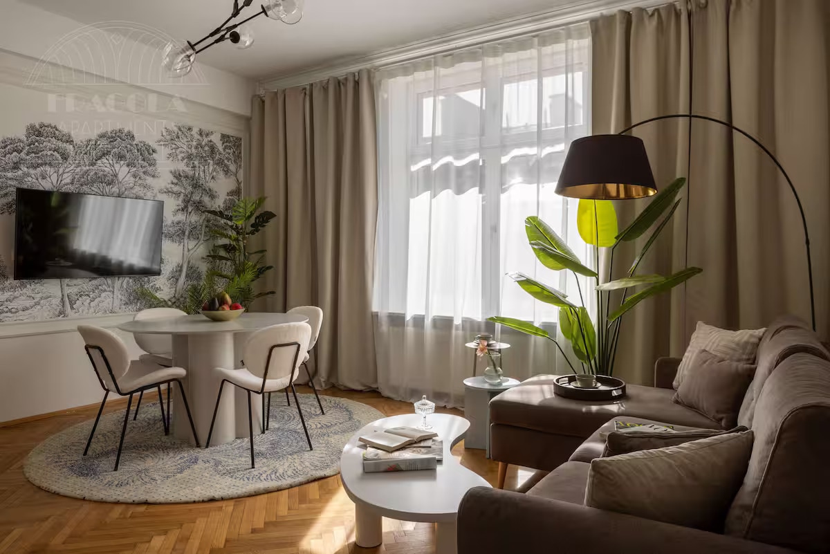 クラシックなヴィンテージデザインのアパートで、歴史ある集合住宅の2階に位置しています。通りと中庭の景色、リビングルーム、設備の整ったキッチン、ダイニングスペース、広い専用バスルーム、快適なダブルベッドを備えた2つの静かなベッドルームがあります。 エアコン、暖房、Netflix、Wi-Fi、洗濯乾燥機、その他のアメニティが備わっており、クラクフでの短期または長期滞在に最適です。