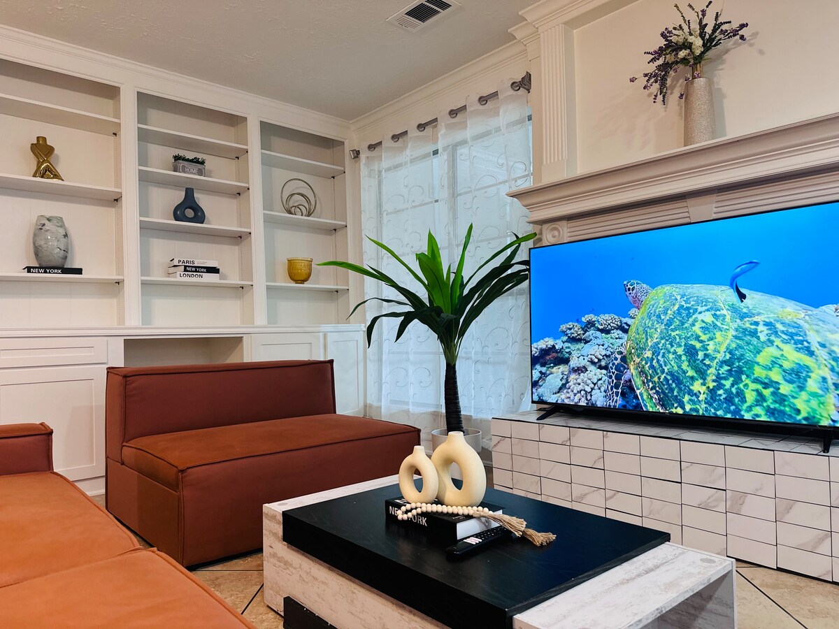 ゲストのために設計・建てたカスタムホームで、デザインがもたらす違いを体験してください! 1800平方フィート、ベッドルーム3室、バスルーム2室、14名様までご宿泊いただけます! チャイナタウンの中心部にあり、ウェストパーク・トール&ベルトウェイ8号線にすぐにアクセスできます。 赤ちゃん/子供/ペット連れ歓迎! すべての必需品/アメニティが含まれています:設備の整ったキッチン、キング2台、全室にテレビ、プレミアムベッド/リネン、無料の軽食/飲み物、すべての洗面用具、専用のワークスペース、洗濯乾燥機、全室にUSBポート、超高速Wi-Fi、Netflix、Hulu、Disney +、ESPN +!