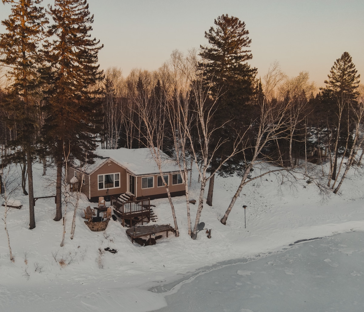 森の中の狩猟用ログハウス(100エーカー以上、オフグリッド)
