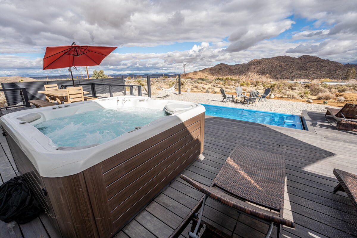 ユニークな3階建てコンテナハウスへようこそ。 屋上デッキからはジョシュア・ツリー国立公園の息をのむような景色を眺めることができます。 屋外エンターテイメントエリアに座って、プール、スパ、ファイヤーピットなどをお楽しみください。 この物件は、2.5エーカーの敷地内で優れたプライバシーを提供し、ジョシュア・ツリーのダウンタウンまで車でわずか7分、ジョシュア・ツリー国立公園まで車で15分と便利な場所にあります。