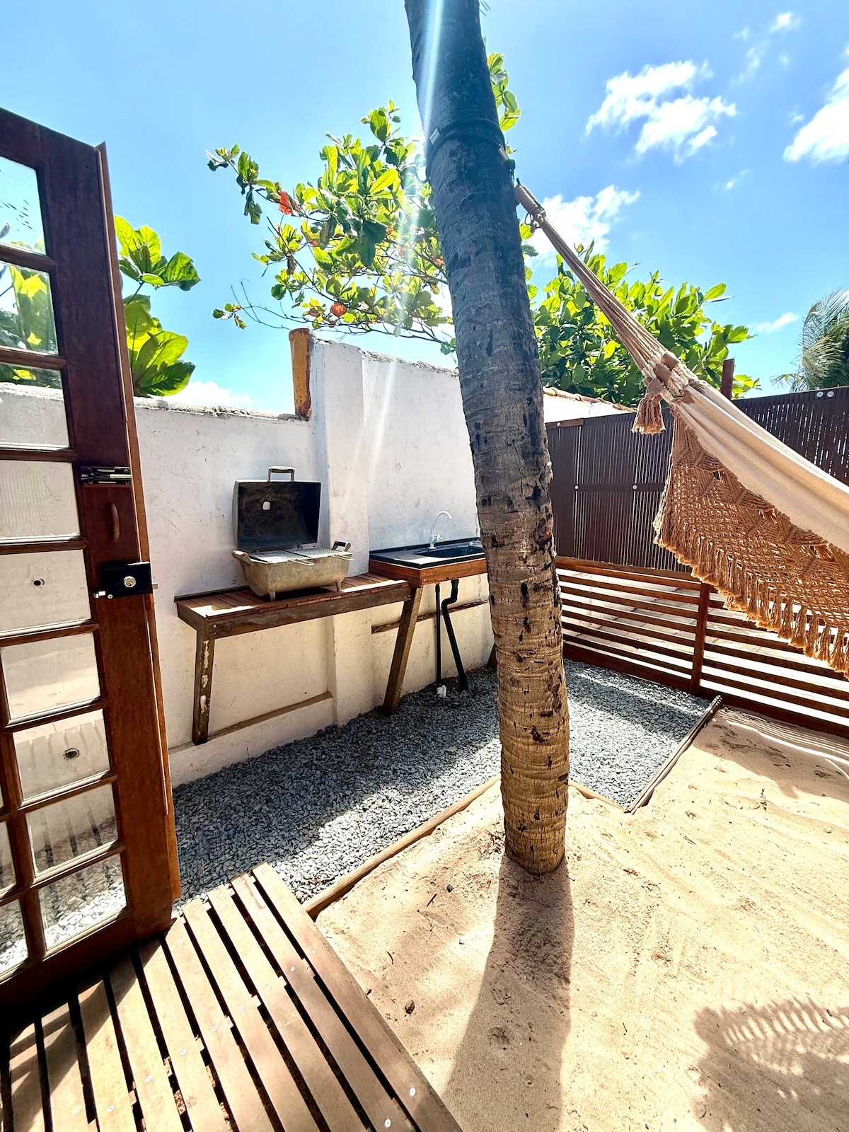 アラゴアス州の海岸に隠された楽園、サン・ミゲル・ドス・ミラグレスの有名なトケビーチから徒歩わずか5🏝️分の、素朴で居心地の良い魅力的な隠れ家。 ヤシの木に囲まれたバンガローは、素朴な屋外バスタブ、プライベートガーデン、そして高品質の寝具を備えた快適なベッドなど、ユニークな体験を提供します。 休息、ロマンス、自然を求めるカップルに最適です。
