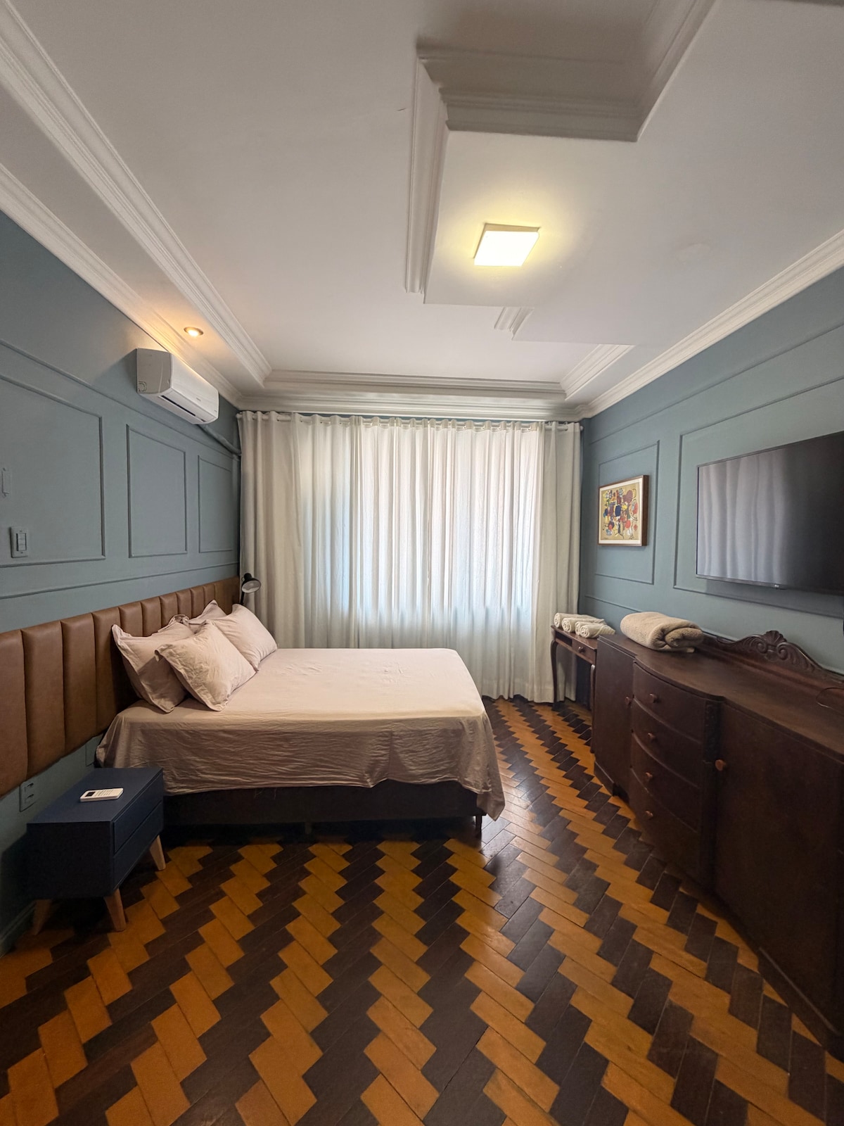 With incredible ocean views, this apartment combines comfort, charm, and a unique identity. Renovated and boasting a rustic, beachy design, the space is located in the Quintas do Calhau neighborhood, one of São Luís's most privileged areas, close to Litorânea Beach, the city's best beach. The apartment features a bedroom with a queen-size bed, a balcony with ocean views, and air conditioning. It also features Wi-Fi and a private bathroom, perfect for short or long stays.