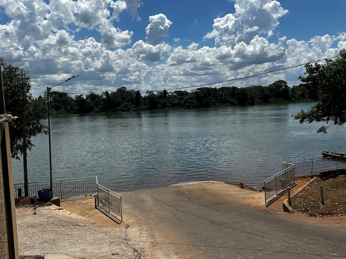 プレジデンテ・エピタシオのパラナ川の向かい側。 家の前に美しいビーチがあるゲート付きの住宅地にあります。「ブラジルで最も美しい」と選ばれた、川と夕日を望む上部デッキがあります。 3つの寝室のうち2つはスイート(すべてエアコン付き)、1つはソーシャルバスルーム、1つはプールエリアのバスルームです。 6 x 3のプール(10月から3月までのオプションの暖房) 近くには釣り用のボートをレンタルできる素晴らしい場所があります。 エピタシオ大統領通りから16分。 @ランチョアレムドオリゾンテ