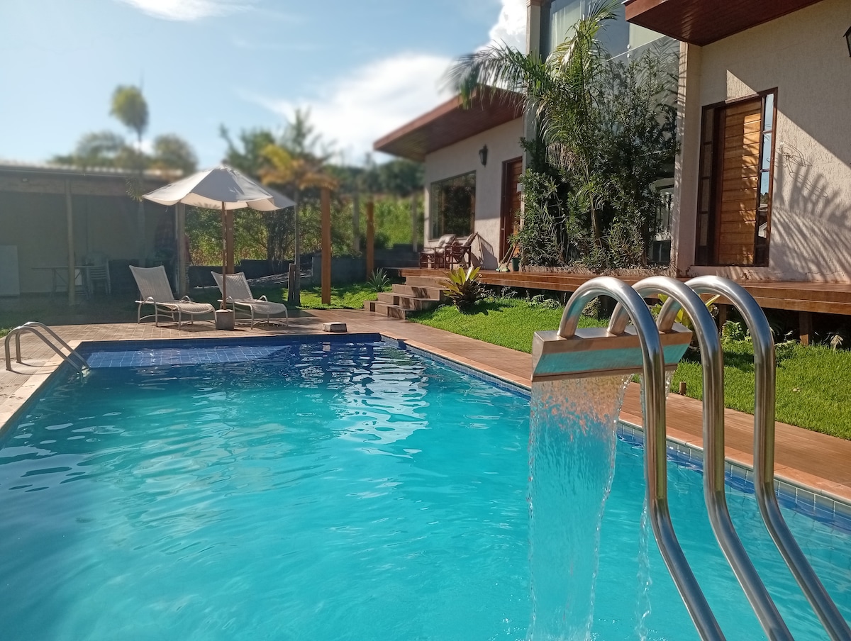 ダムの端にある広々とした家で、わずか28ロットのゲート付きコミュニティにあります。 Ambienta Arquitetura(雑誌『Arquitetura e Construção』などで名高い)によって実施されたプロジェクトで、3,900平方メートルの土地、516平方メートルの建物、標準プール、小さな温水プール(電気ヒーター)、トランポリン、スラックライン、カヤック、スタンドアップパドル、バーベキューがあります。 5つのスイート(すべてエアコン付き)と別のトイレ。 14名様と赤ちゃんが快適に過ごせます。