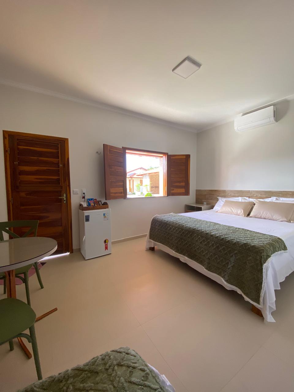 レンソイス・マラニェンセスの発祥地にあるファミリーインのダブルルーム。 客室にはエアコン、ダブルベッド、ミニバー、電気シャワー付きの専用バスルームがあります。さらに、ゲストの方々には1日1回の朝食をご用意しております!