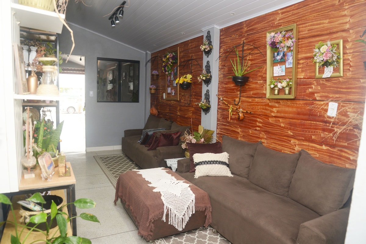 RECANTO LUZ&MELODIA CASA COMPARTILHADA Quarto Lua e flor *Cama Queen, mezanino com cama de casal, climatizado, banheiro privativo, wi-fi e espaço de trabalho Cozinha completa, sala acolhedora e varanda charmosa. Ideal para: -Militares -Pacientes -Concurseiros -Turistas -Estudantes Facilidade pra uso de Uber ou coletivos, localizada em bairro nobre, com fácil acesso: -Shoppings -Restaurantes -Supermercados -Farmácias -Hospitais. Conforto e praticidade com clima de lar. Alto custo benefício.