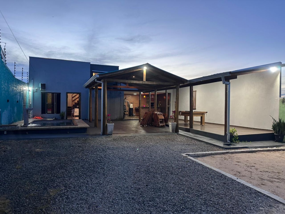 Casa com garagem,ar condicionado, tv, Wi-Fi, fogão, mesa com 4 cadeiras,geladeira, pia e armário de cozinha