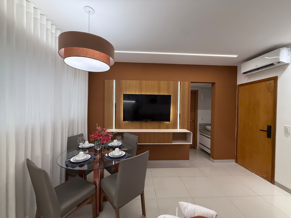 ✨ Espaço moderno e bem equipado, com ar-condicionado em todos os ambientes, duas TVs de 42” e cozinha completa. Aproveite a vista para o Lago de Palmas e um pôr do sol incrível direto da acomodação. 📍 Em frente ao Shopping Capim Dourado e perto dos melhores restaurantes, cafés, bares e lojas da cidade. 💫 Conforto e praticidade para uma estadia memorável. Seja bem-vindo!