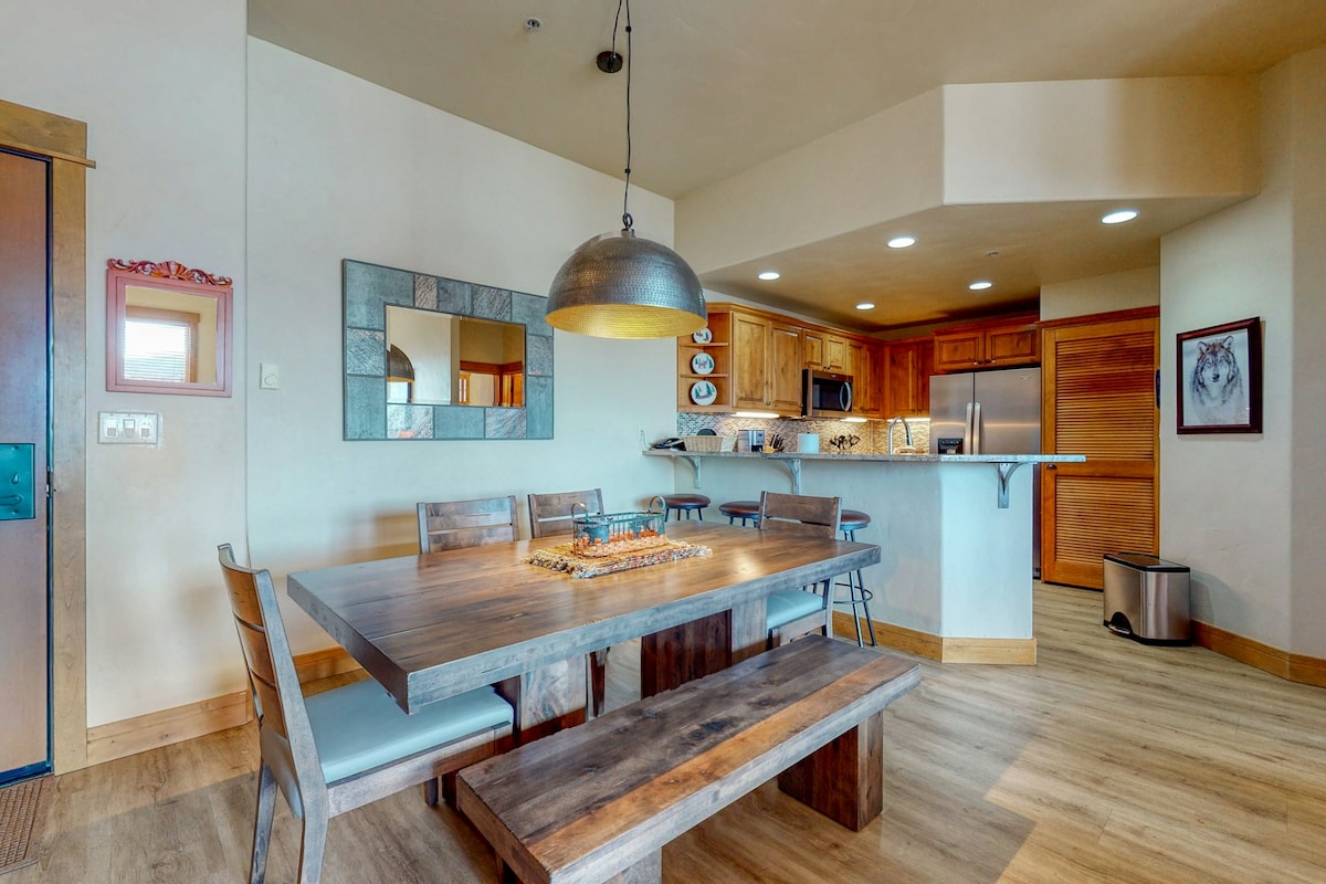 This newly renovated, spacious 1/1 condo at the Rockies features the comforts of home and is just steps from the resort, making it the perfect home base for your Steamboat Springs getaway! After a long day playing in the mountains enjoy access to the heated year-round pool, two hot tubs, and outdoor grills before lighting the fireplace and streaming your favorite shows on the 65” Smart TV. This condo is very comfortable, with an oversized couch, heated floors, and king size Purple mattress.