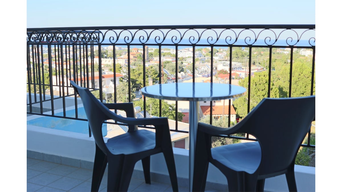 Peace & viewは、あなたが休暇中に求める平穏と、目の前に広がる無限の青空の壮大な景色を、惜しみなくお届けすることをお約束します!ビーチやお店から徒歩わずか4分のところにある、静かな家です!寝室が2つあるので、大家族に最適です。電化製品がすべて揃っており、ヘアドライヤー、トースター、ケトル、コーヒーメーカー、トースター、アイロンなどの小型家電もあります。