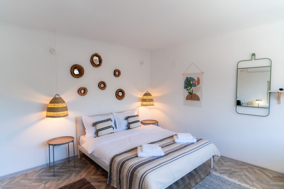 Take it easy at this unique and tranquil getaway. Right on the Corbu beach, where wilderness is still in bloom, admire the nature and relax away from the busy city life. Our garden-view double room is the perfect option for you, combining comfort and premium amenities, while fully embracing the quietness of the green and cozy yard. Begin your mornings by savoring a cup of freshly brewed coffee on the outside patio and let the rays of sunshine guide you throughout the day.