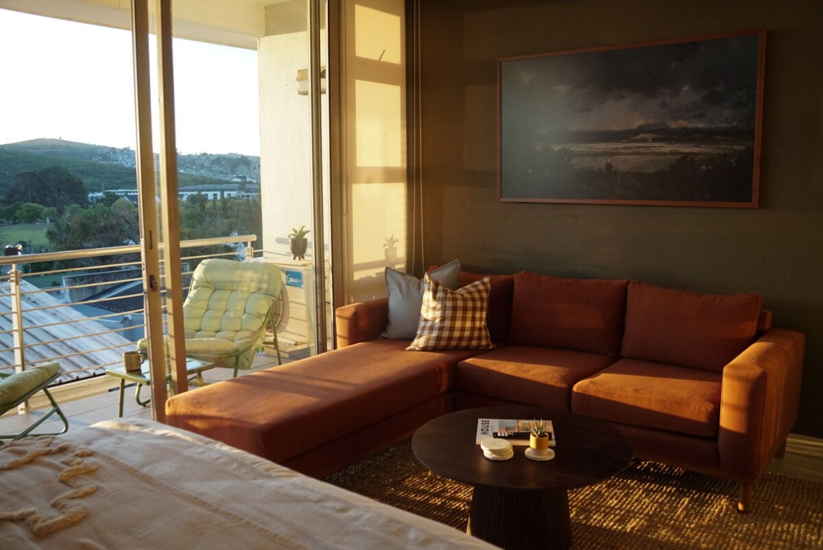 Relax in this stylish, modern, solar-powered loft in Mostertsdrift, Stellenbosch's prime neighbourhood. The open-plan kitchen, cozy living area, and private balcony with stunning mountain views to enjoy your morning coffee or a glass of wine, is perfect for up to three guests. Just a short walk from Lanzerac Wine Estate and close to cafes, shops, and dining spots. Enjoy scenic hikes or mountain biking in Jonkershoek Nature Reserve, wine tasting, or simply unwind—everything is at your doorstep!